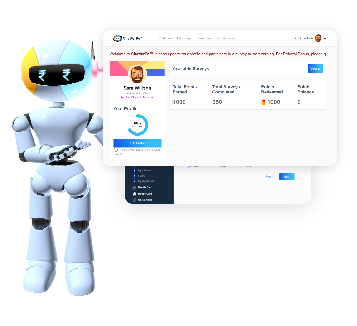 ChatterPe™ is an intuitive platform that lets you earn quick bucks for expressing your views, every time. A virtual space that empowers you to voice your opinion, likes, dislikes, and preferences on brands, policies, products, places, and so much more. Sharing your opinion is just the beginning, as the more you 'chatter - create noise', the more you get the 'pe - pay'. Every opinion is worth money that can be transferred directly to your e-wallets/m-wallets without any restrictions. You get to define how much you earn at your own pace.