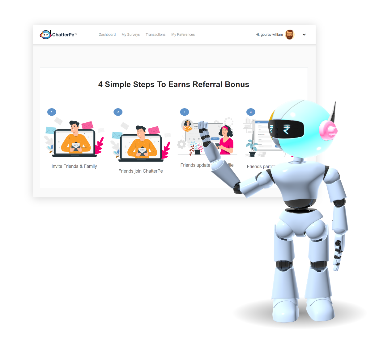 Making an impact was never so rewarding. With ChatterPe™ you can share opinion, pitch-in your million-dollar idea and help brands build better products and service. Earn reward points by participating in surveys and turn it into easy cash. The money will be directly transferred into your M-wallet. Anyone can make an account on ChatterPe™ and can get started. Every time you speak-up, you earn money. It’s quick, easy, and simple!